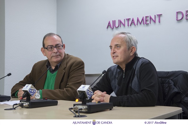 Gandia 26 de gener 2017.- El president de la Junta de Districte del Grau, Miguel Ángel Picornell acompanyat per president de la Falla Sant Nicolau Mosquit, Antonio Bermejo, han presentat aquest matí les activitats organitzades per les diferents associacions de la barriada amb motiu del Porrat del Grau i de la Festa de Sant Antoni Abat que se celebrarà els pròxims dies 28 i 29 de gener.