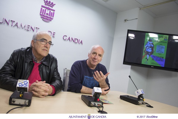 Gandia 23 de març 2017.- El regidor delegat de Cultura, Joan Muñoz i Xavi Merí de Comuna Gàbia Teatre, han presentat hui en roda de premsa l’activitat que es desenvoluparà a la nostra ciutat el proper dilluns amb motiu del Dia Mundial del Teatre.