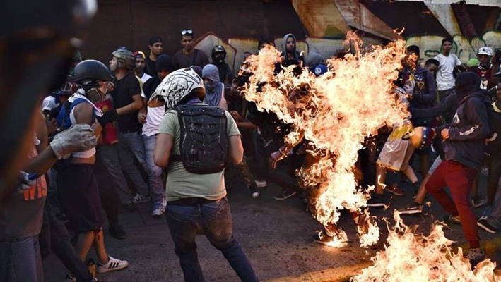Mientras que oficialistas y opositores se echan responsabilidades sobre la violencia en las manifestaciones, el sábado un joven de 21 años fue prendido fuego durante una marcha opositora en Caracas.