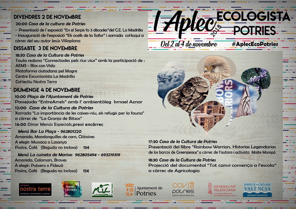 Davant d’aquestes inquietuds en protegir el medi natural ens trobem amb la necessitat de celebrar el I Aplec Ecologista de Potries, amb intenció d’obrir el debat sobre el respecte i la preservació del nostre entorn.