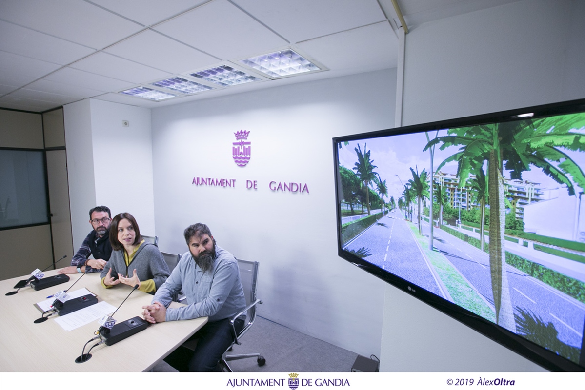 Gandia 10 de gener 2019.- L’alcaldessa de Gandia, Diana Morant, acompanyada pel director general d’Urbanisme, Vicent Mascarell i el regidor delegat de Gestió Responsable del Territori, Xavier Ródenas, han comparegut aquest matí en roda de premsa per anunciar que la Diputació de València ja ha publicat en la plataforma de contractació de l’Estat la licitació del bulevard de la platja de Gandia que substituirà el traçat existent de l’antiga Natzaret-Oliva. L’ens provincial invertirà 2,5 milions d’euros en el projecte que millorarà la imatge de la platja en un tram de dos quilòmetres, a més d’augmentar la seguretat dels vianants, ciclistes i conductors al mateix temps que es generen noves zones verdes i es posa en marxa un carril ciclista.