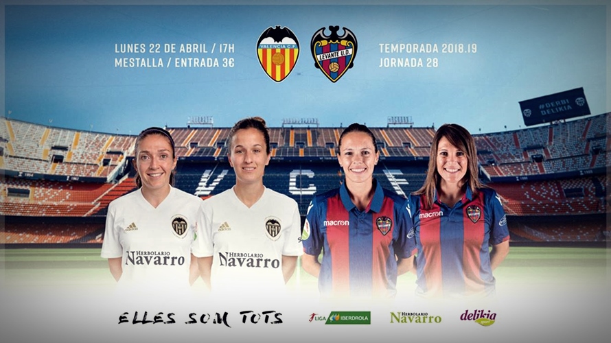 València (Comunitat Valenciana), 23/04/2017. La jugadora del Valencia CF, Joyce Magalhaes, disputa un balón a la jugadora del Levante UD, Adriana Martín, durante el partido correspondiente a la 26ª jornada de la primera división femenina jugado este mediodía en el estadio de Mestalla. Ganó el Valencia 6 a 0.