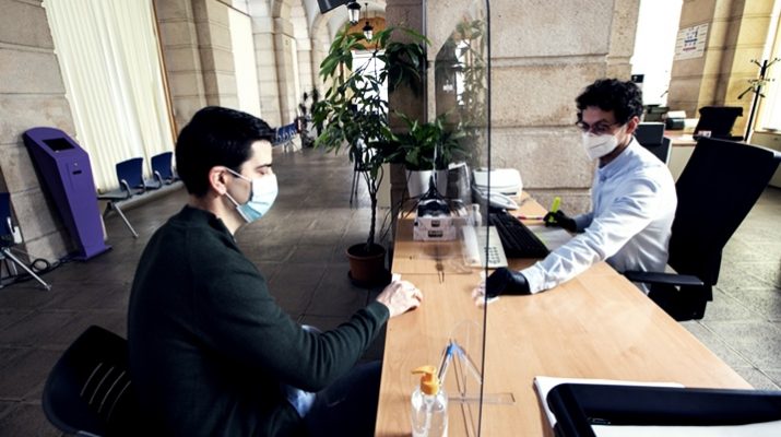 Gandia, 27 d’abril 2020.- Gandia ja treballa en les mesures que es prendran en quant comence el desconfinament. Una d’aquestes accions ha estat la col·locació d’elements com ara mampares de protecció com a mesura de prevenció de contagis per COVID-19.