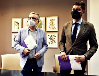 Gandia 23 d’octubre de 2020.- El regidor delegat de Turisme, Vicent Mascarell, acompanyat per Fernando Viota, responsable de la Nao Victoria ha visitat aquest matí l’embarcació que estarà atracada durant aquest cap de setmana en el Moll dels Borja.