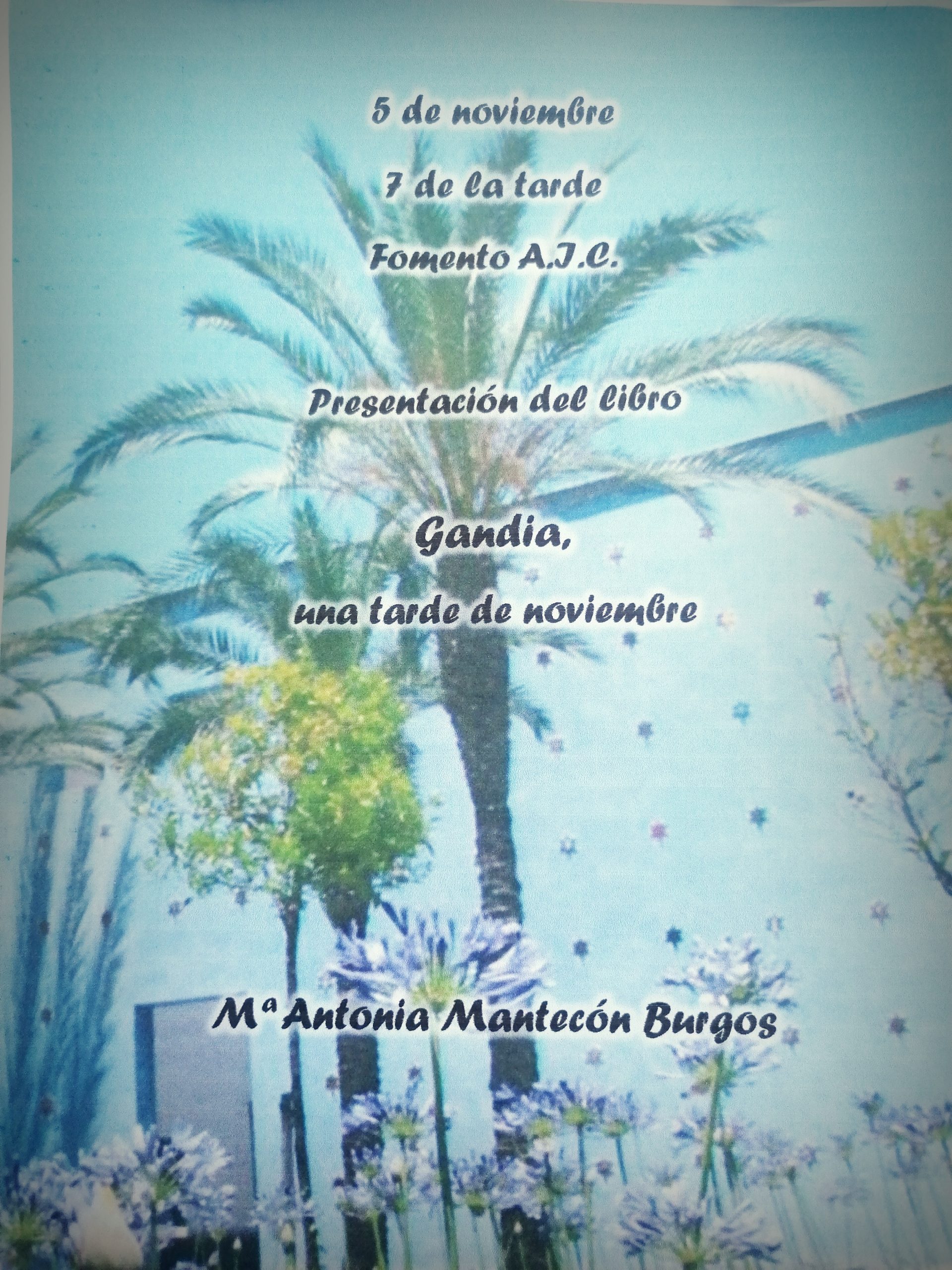 María Antonia Mantecón Burgos, criminóloga, escritora y buena persona, presenta su último libro ambientado en Gandia. Lo hace en fomento este sábado 5 de noviembre a las 19 h. en Fomento A.J.C. Entrada libre