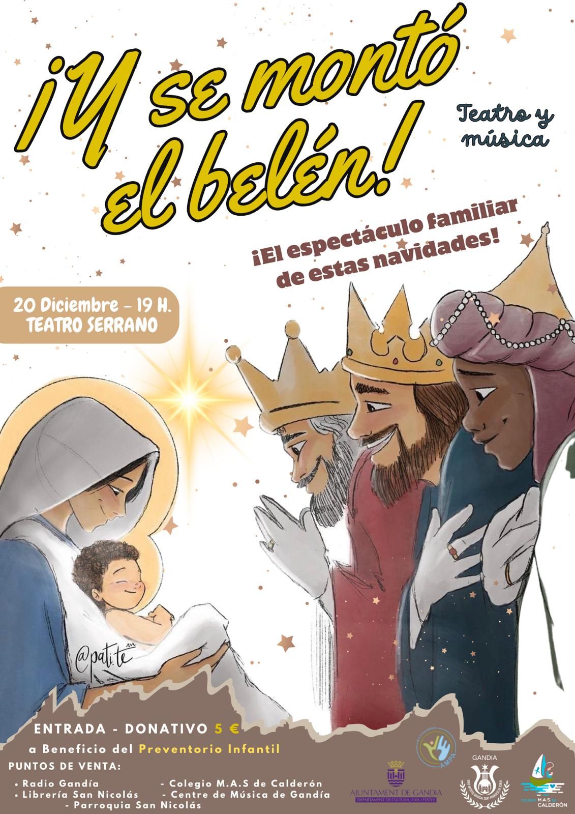 La Banda Jove de la UAM Sant Francesc de Borja de Gandia i el Col.legi M.A.S. de Calderón del Grau de Gandia col.laboren per representar un gran espectacle nadalenc dirigit a un públic familiar, on grans i menuts gaudiran d’una representació teatral mai vista en Gandia: un Betlem vivent amb decenes de figuretes representades per xiquets i xiquetes, i ambientada amb joves cantants i músics, en la que no faltaran les sorpreses durant la funció. El públic no quedarà indiferent davant més de 150 cantants, actors, actrius i músics de la ciutat que actuaran amb tota la il.lusió per a ajudar a les xiquetes i xiquets del Preventori Infantil «Nuestra Señora del Amparo». Sens dubte, l’espectacle músico-teatral d’aquest Nadal.
