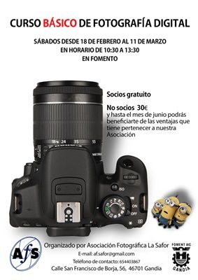 Sábados por la mañana en Fomento De nuevo la Asociación Fotográfica La Safor -AFS- pone en marcha un Curso Básico de Fotografía Digital,